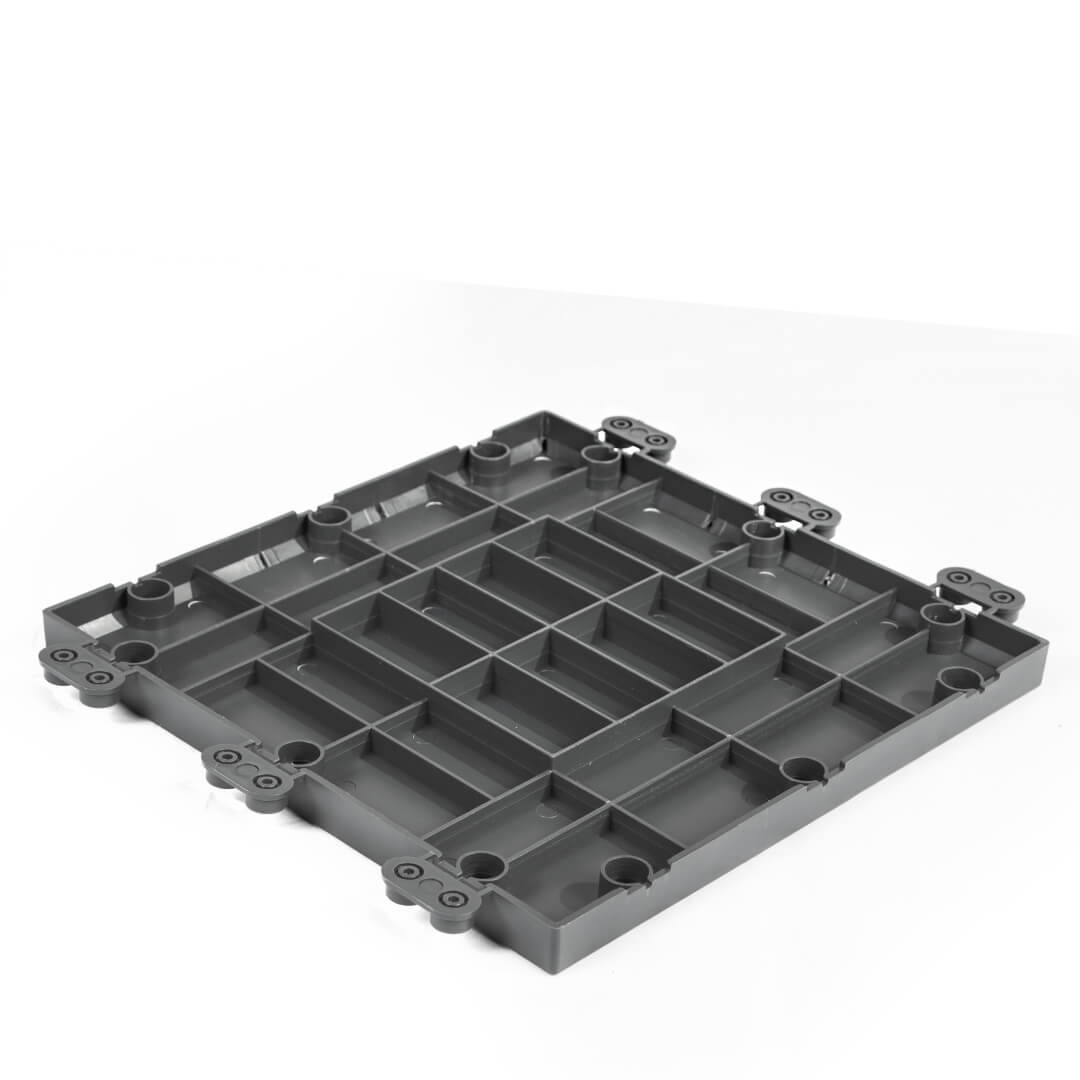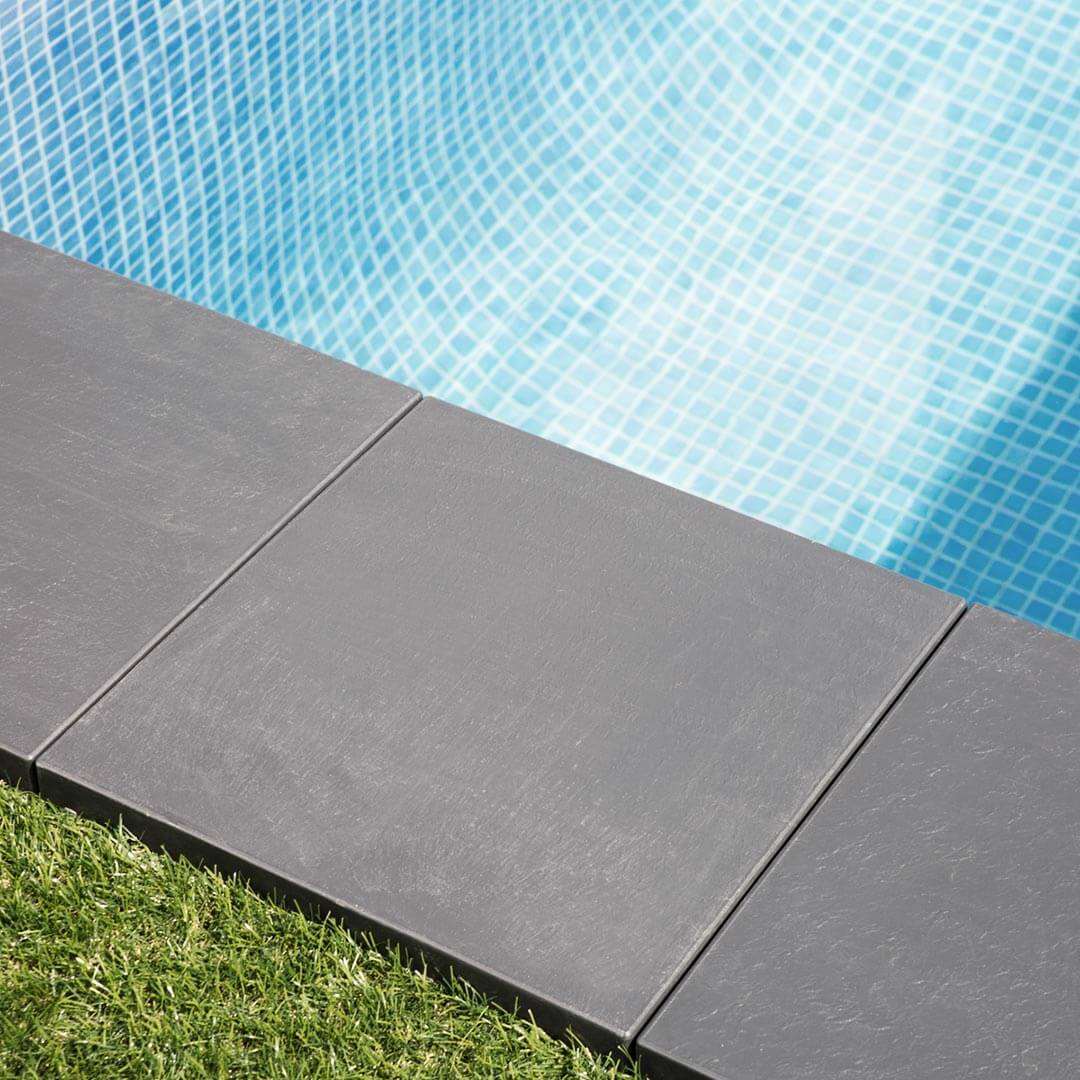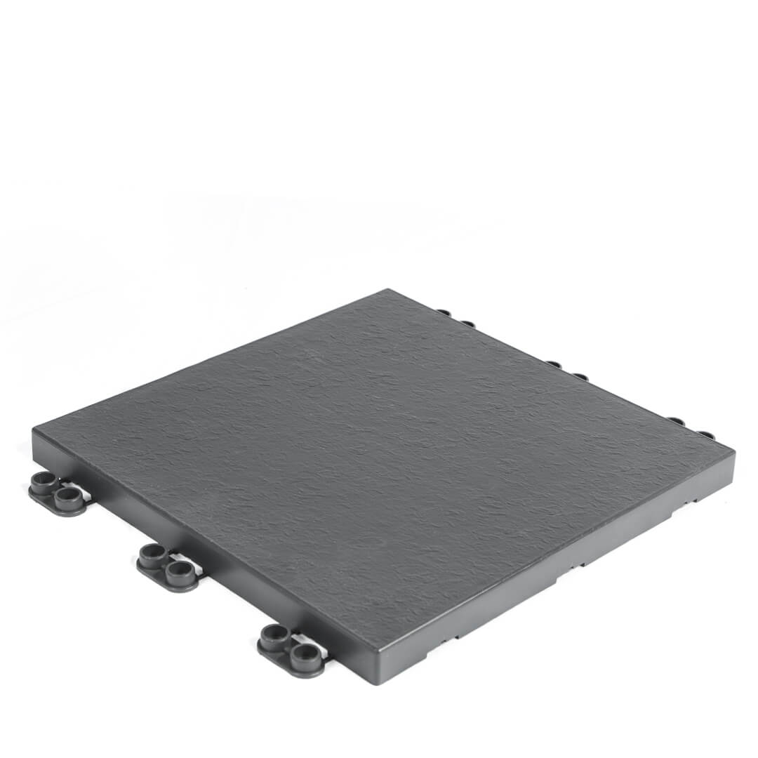 Pack 9 Baldosas Ecológicas ClickFloor Pizarra 30x30 cm, fácil montaje, resistentes a UV y clima, sistema de click para ensamblaje.