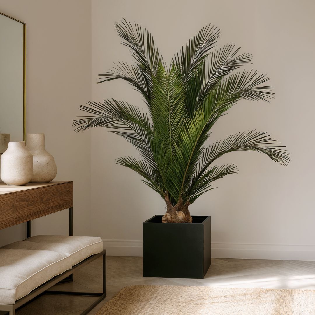 It is ideal for wide corners, main entrances or transition areas where its height and tropical silhouette can stand out.