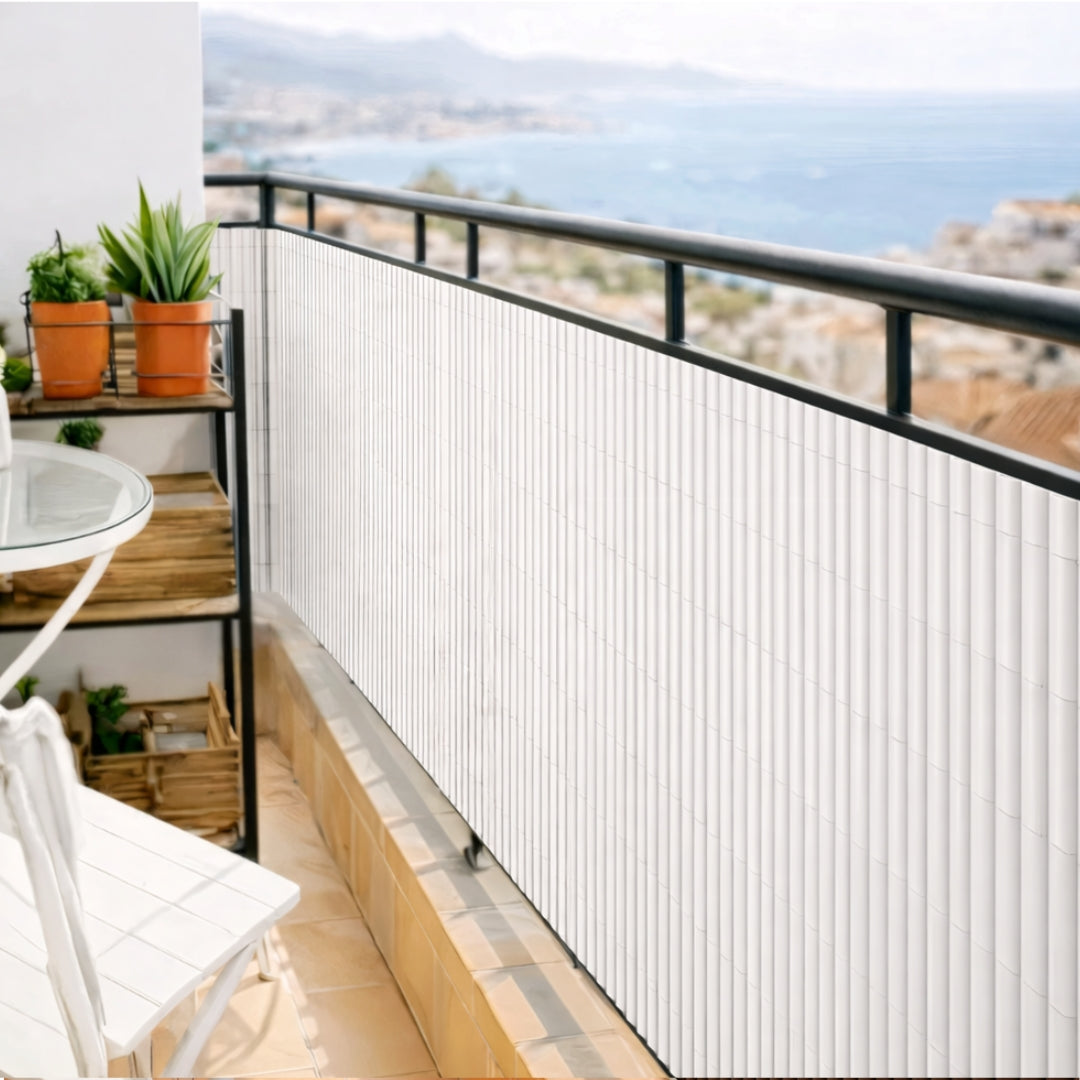 PLASTICANE white synthetic reed fencing is the perfect choice for those seeking a modern and elegant enclosure for gardens and terraces. Its PVC finish provides partial privacy without blocking light.