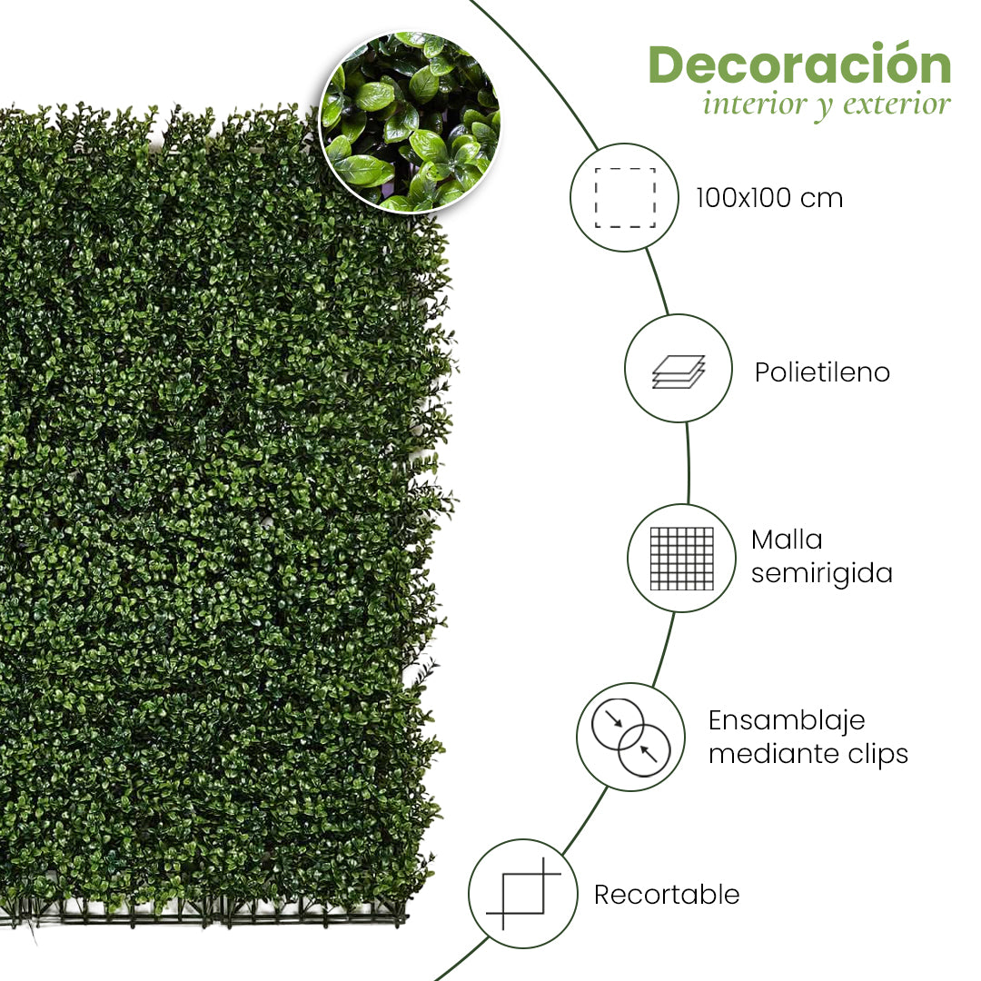The Boxwood Vertical Garden Roll is a new model of vertical garden made from synthetic plants inspired by the common boxwood tree . Its natural and realistic appearance will give a unique touch to the walls of your home or business. This vertical garden model comes in a roll measuring 100 x 100 cm , making installation quick and easy. You can even combine several models to create unique spaces.