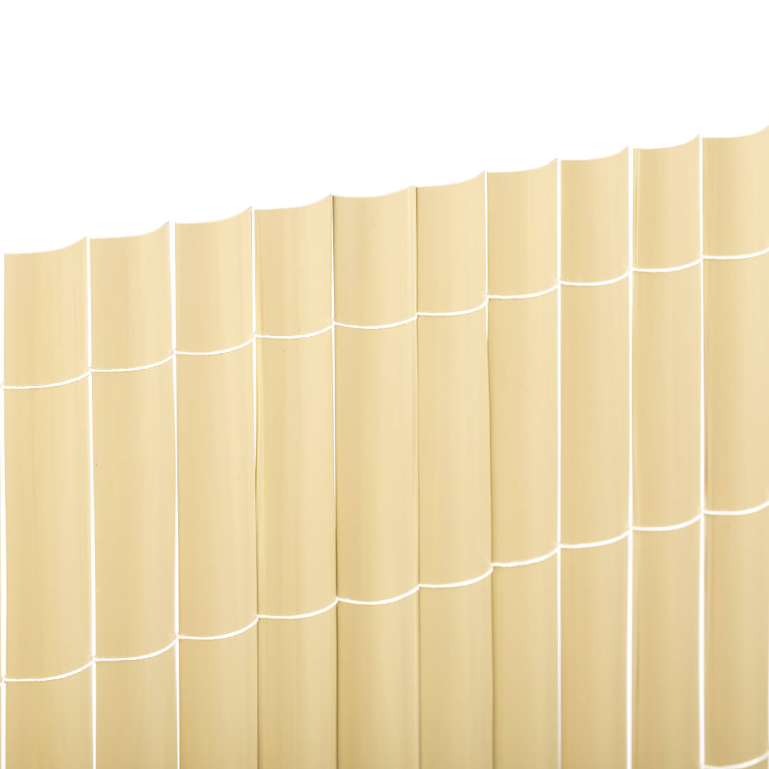 Cette clôture en roseau PVC simple face, de couleur roseau, vous offre une intimité maximale pour votre balcon, terrasse ou jardin. Fabriquée à partir de profilés PVC simple face de haute qualité d'une largeur de 30 mm, elle est composée de tiges cousues ensemble avec du fil de nylon collé. De plus, la clôture en