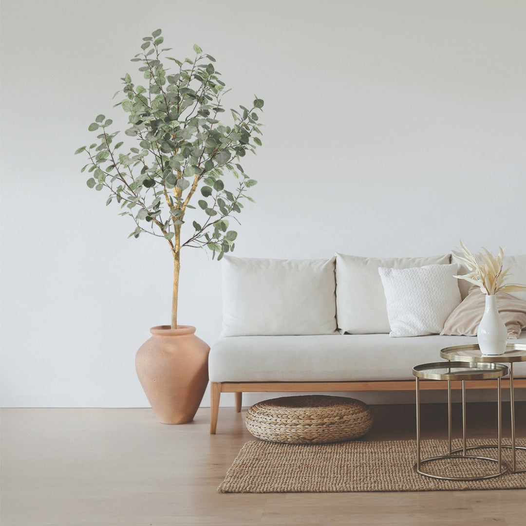 Este árbol eucalipto artificial decorativo está concebido para integrarse con facilidad en ambientes contemporáneos, nórdicos, minimalistas o clásicos. La disposición de sus ramas y hojas crea una silueta equilibrada y llena, ideal para: