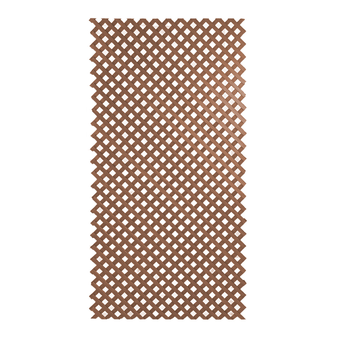 El diseño de la celosía permite su colocación tanto en posición vertical como horizontal, adaptándose a diferentes superficies y necesidades decorativas o de ocultación.