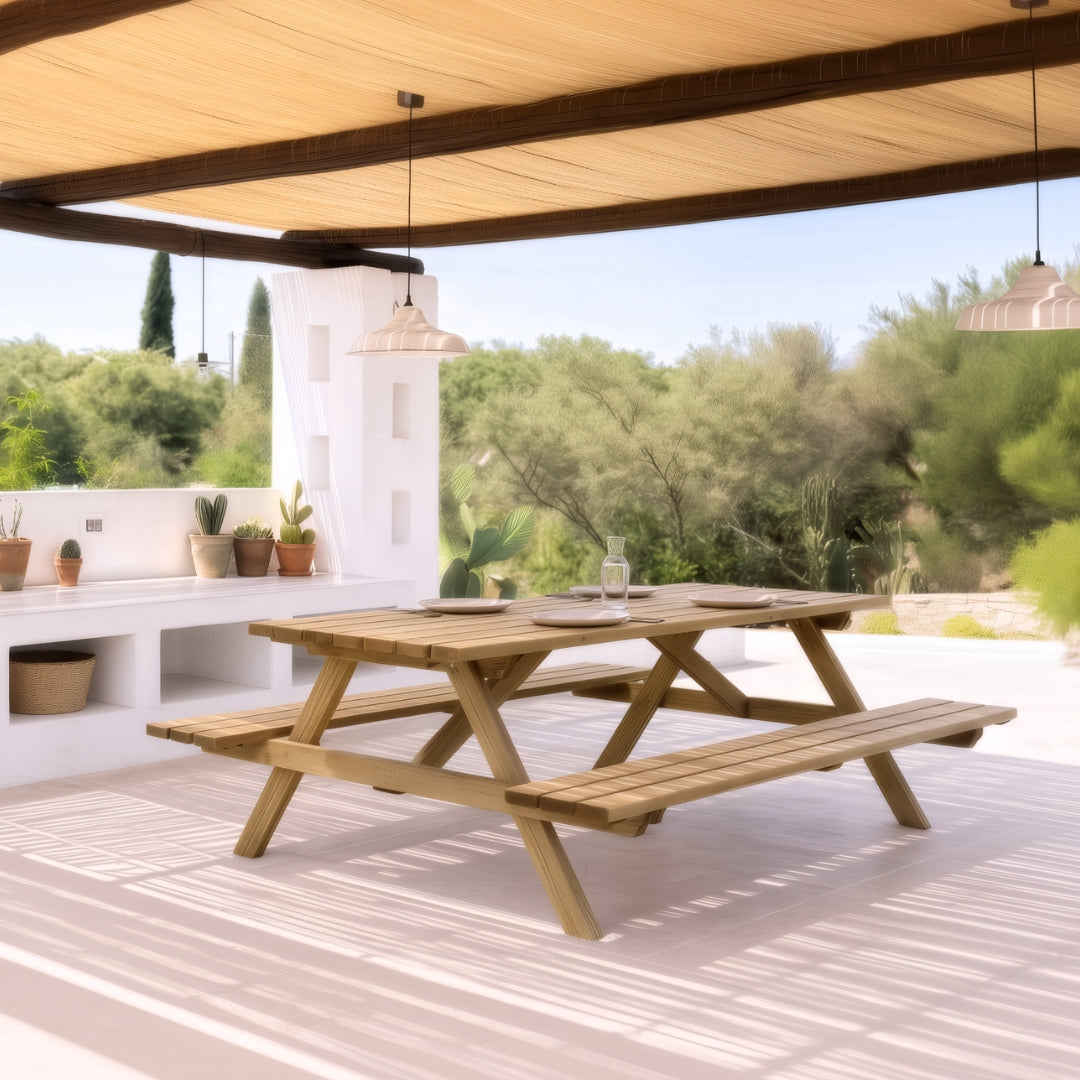 CM Da Deco and Lemon è arrivato il nuovo modello di tavolo da picnic in legno con panche integrate, ideale per preparare il giardino per le feste all'aperto: barbecue, compleanni, ritrovi con