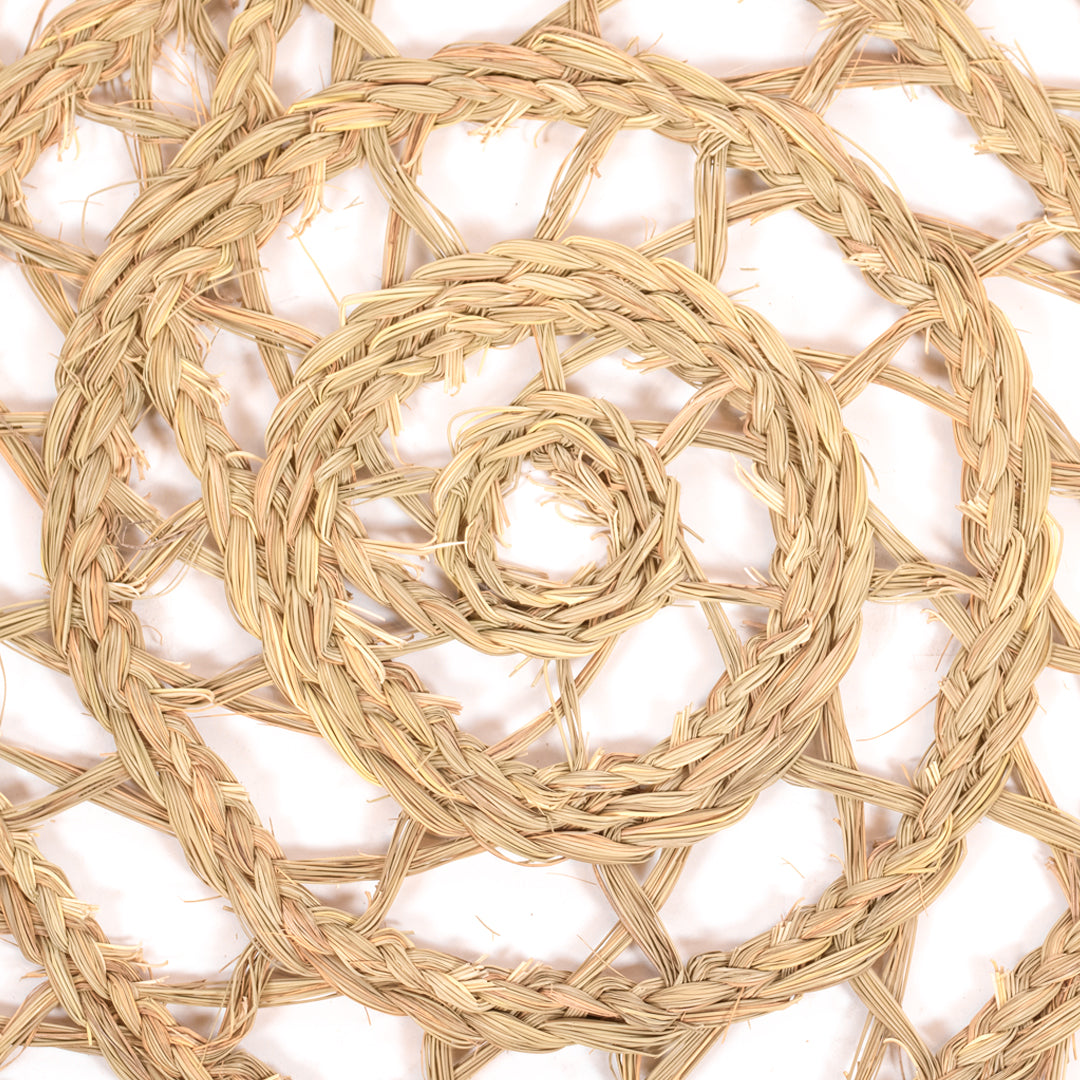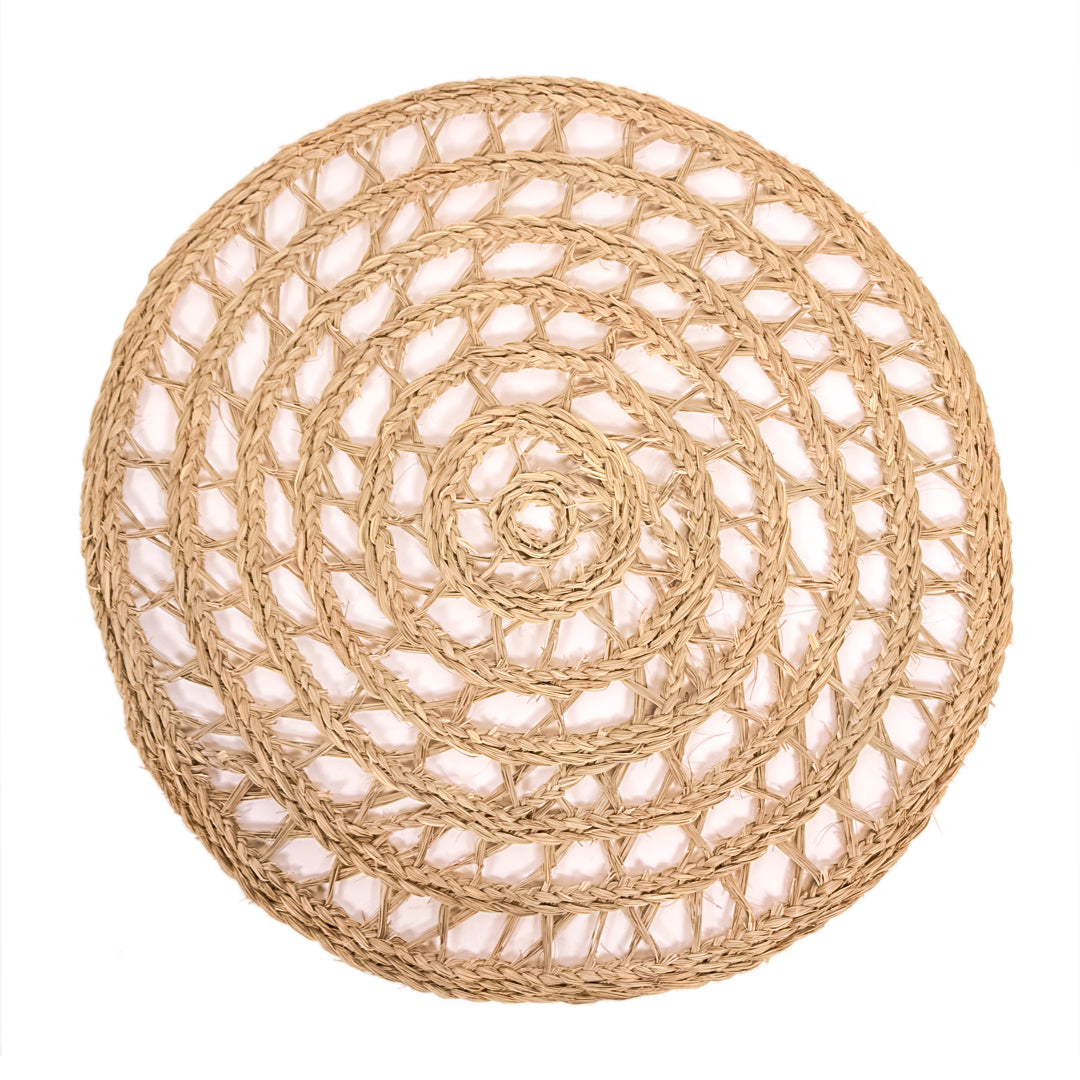 Consigue el encanto del estilo Mediterráneo en tu hogar con nuestro modelo Trípoli, nuestra alfombra redonda de esparto con diseño calado.