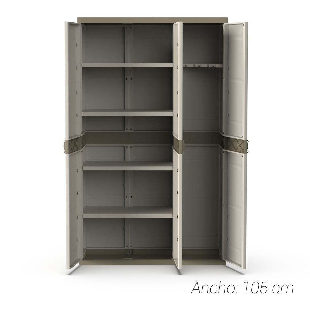 Armario escobero 3 puertas 105x41x176 cm beige