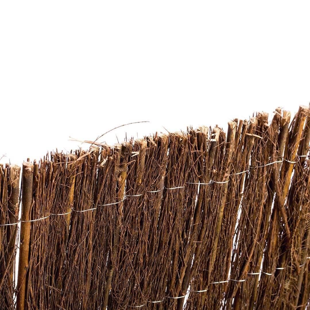 El Brezo Combi de Catral es un tipo de cerramiento natural compuesto por una combinación de varillas de brezo y mimbre natural. La unión de las varillas se realiza tejiendo alambre galvanizado a la estructura. Siendo un brezo de ocultación media, este tipo de cerramiento genera una ocultación más que suficiente para darle a tu jardín un toque diferente, natural y discreto.