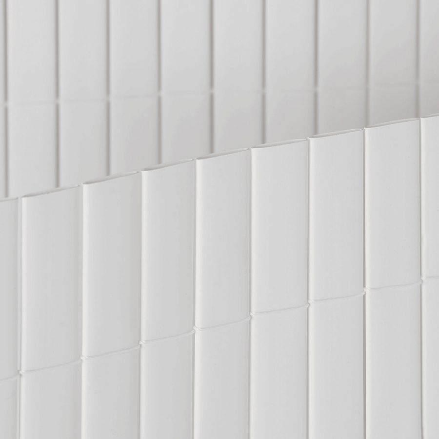 El cañizo de PVC E-Plus de doble cara en color Blanco es un tipo de cerramiento económico capaz de darle a tu balcón terraza o jardín la máxima ocultación que ncesitas. Este cañizo está fabricado con perfiles de PVC de doble cara con una anchura de 20 mm. A su vez, estas varillas están cosidas con hilo de nylon encolado cada 10 cm en todas las varillas de las que se compone el cañizo.