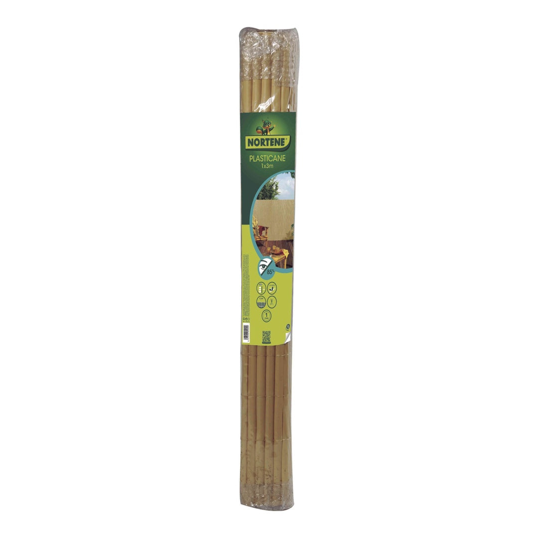 El cañizo sintético PLASTICANE color caña es la solución perfecta para quienes buscan un cerramiento decorativo y funcional en jardines, terrazas y balcones. Su diseño con lamas semiovaladas de 17 mm ofrece una media ocultación, garantizando privacidad sin perder luminosidad ni ventilación.