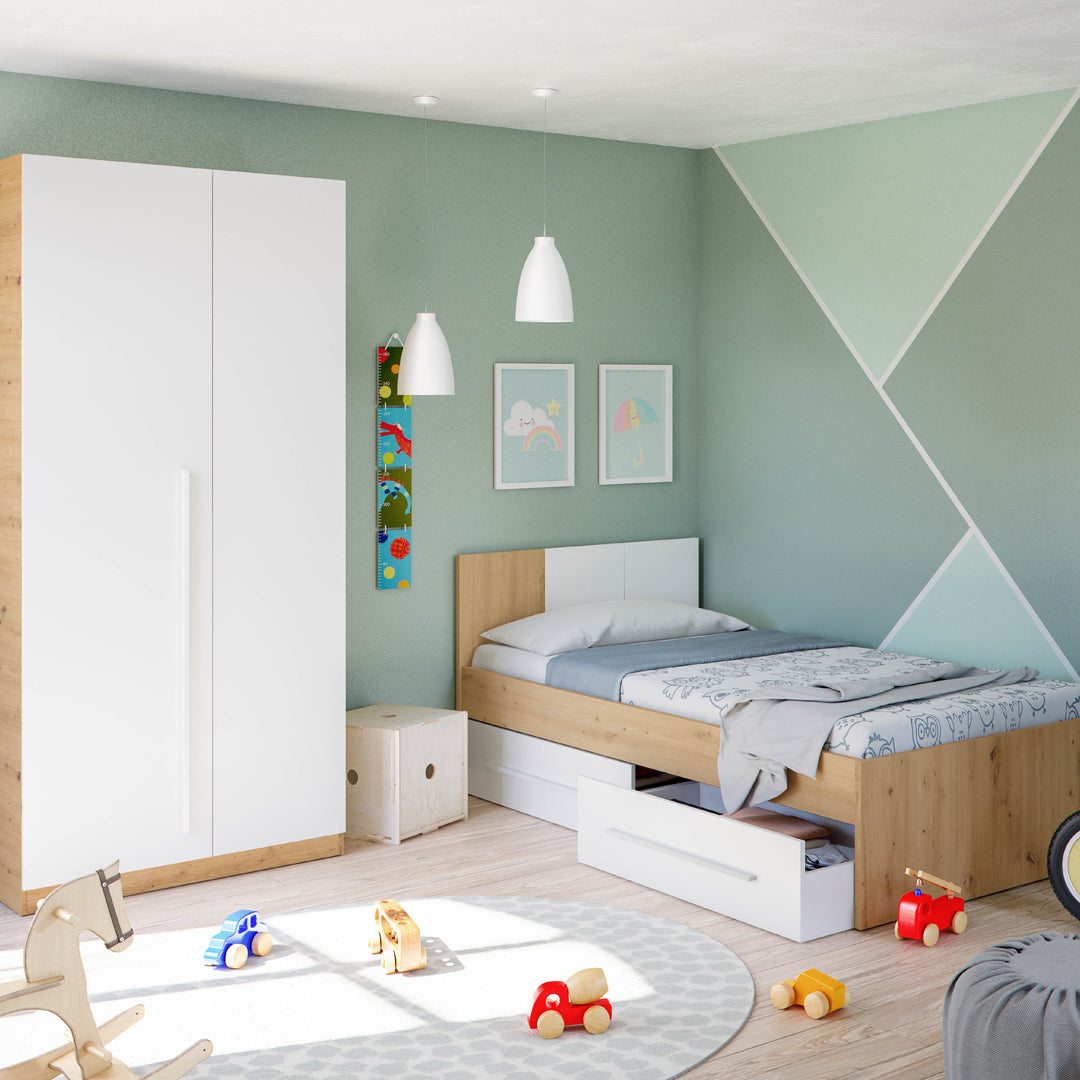 Cama cabezal dos cajones 77x196x97 cm blanco artik y roble nodi