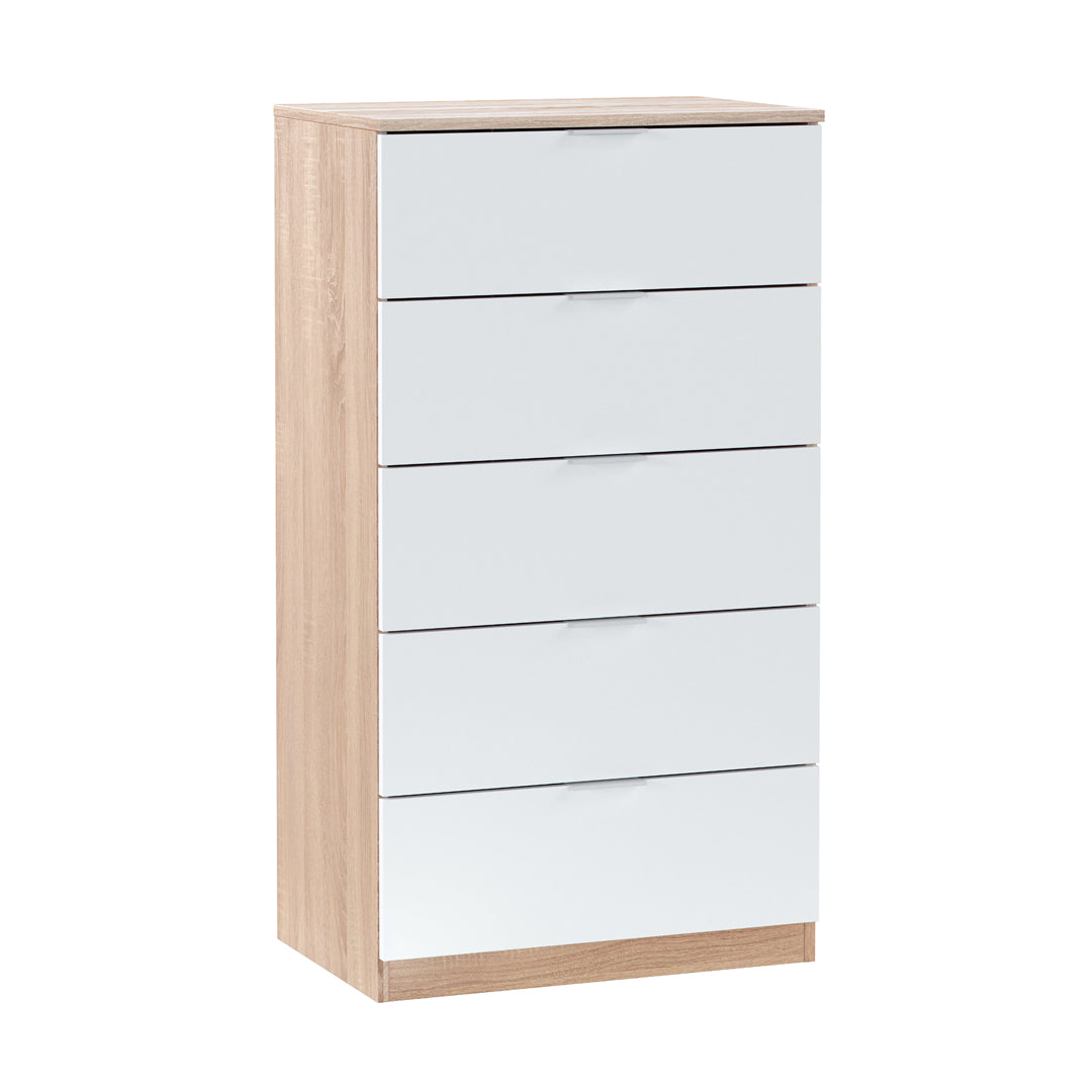 CÓMODA 5 CAJONES 110X60X40 CM BLANCO ARTIK Y ROBLE CANADIAN