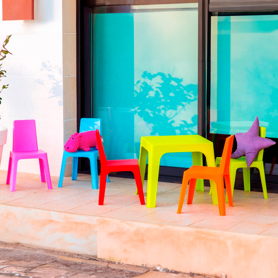 Gracias a la protección UV, este conjunto es ideal tanto para interiores como para exteriores, siendo resistente a las inclemencias del tiempo sin perder su color ni su funcionalidad. Ya sea para mobiliario escolar o para salas de juego en casa, el conjunto Julieta es la elección perfecta para crear un entorno dinámico y atractivo donde los niños puedan aprender y disfrutar.