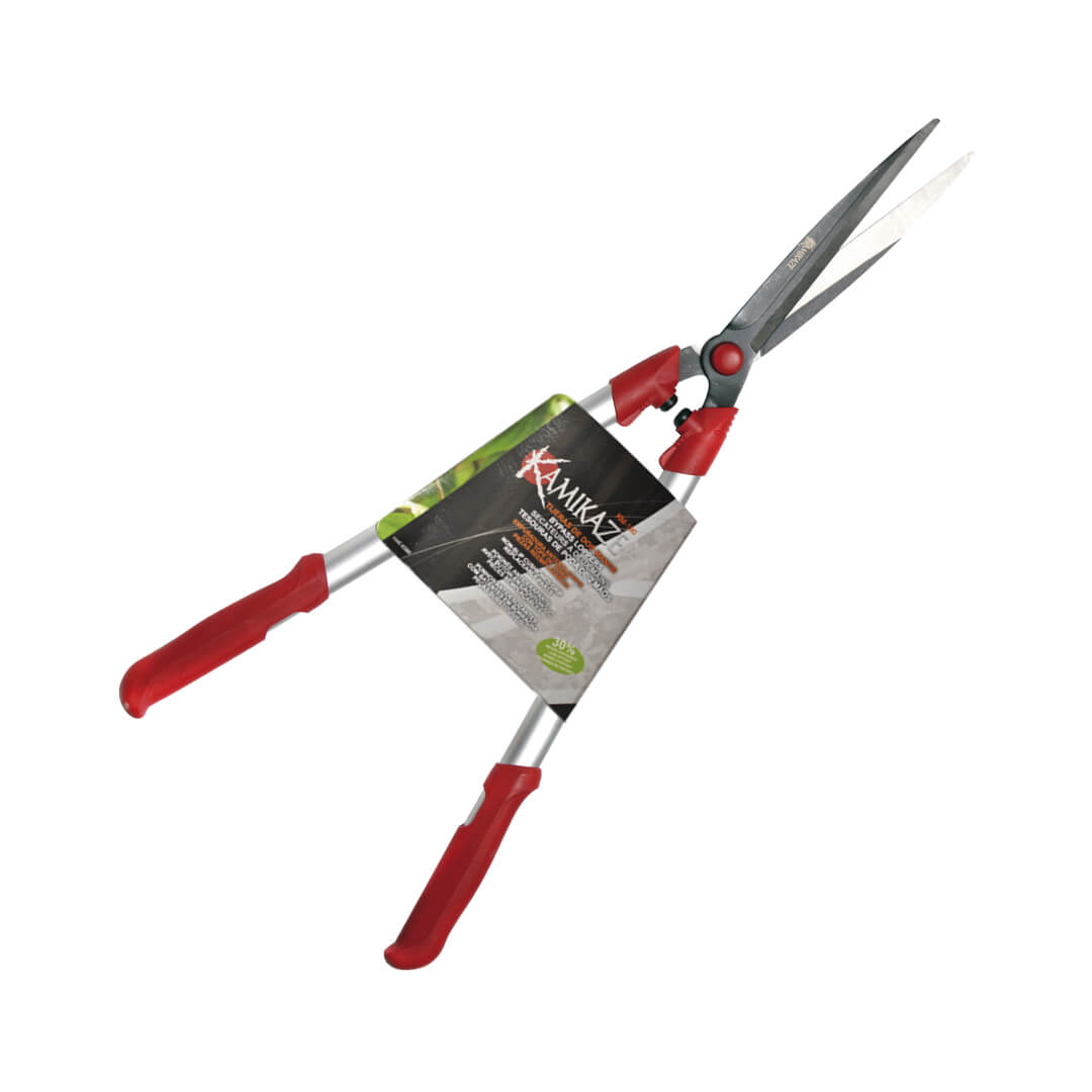 La Tijera Corta Setos KM37 se trata de una tijera diseñada especialmente para el corte y poda de setos. Cuenta con un tamaño de cobertura ligera de 25 cm, hoja recta, y mango de aluminio de 50cm para cortar arbustos. Además cuenta con un tope de caucho para hacer más cómodo el corte.