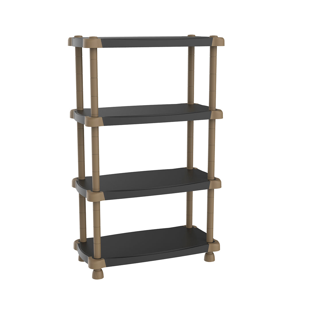 Descubre nuestra estantería de cuatro estantes regulables en elegante color negro. Fabricada con material de resina de alta calidad, esta estantería es la solución perfecta para tus necesidades de almacenamiento. Su resistencia a la humedad y al calor la hace ideal para cualquier espacio de tu hogar.