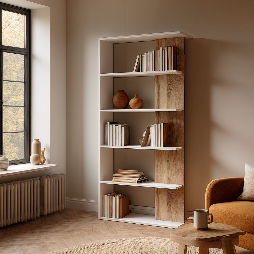 ESTANTERIA LORAS 90X180CM BLANCO ARTIK/ROBLE CANADIAN