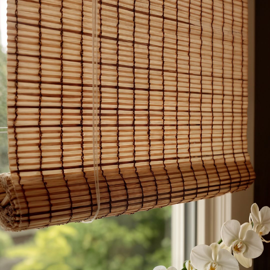 Estor Bombai en tonos marrón oscuro y caña para decoración de interiores, varias medidas disponibles.