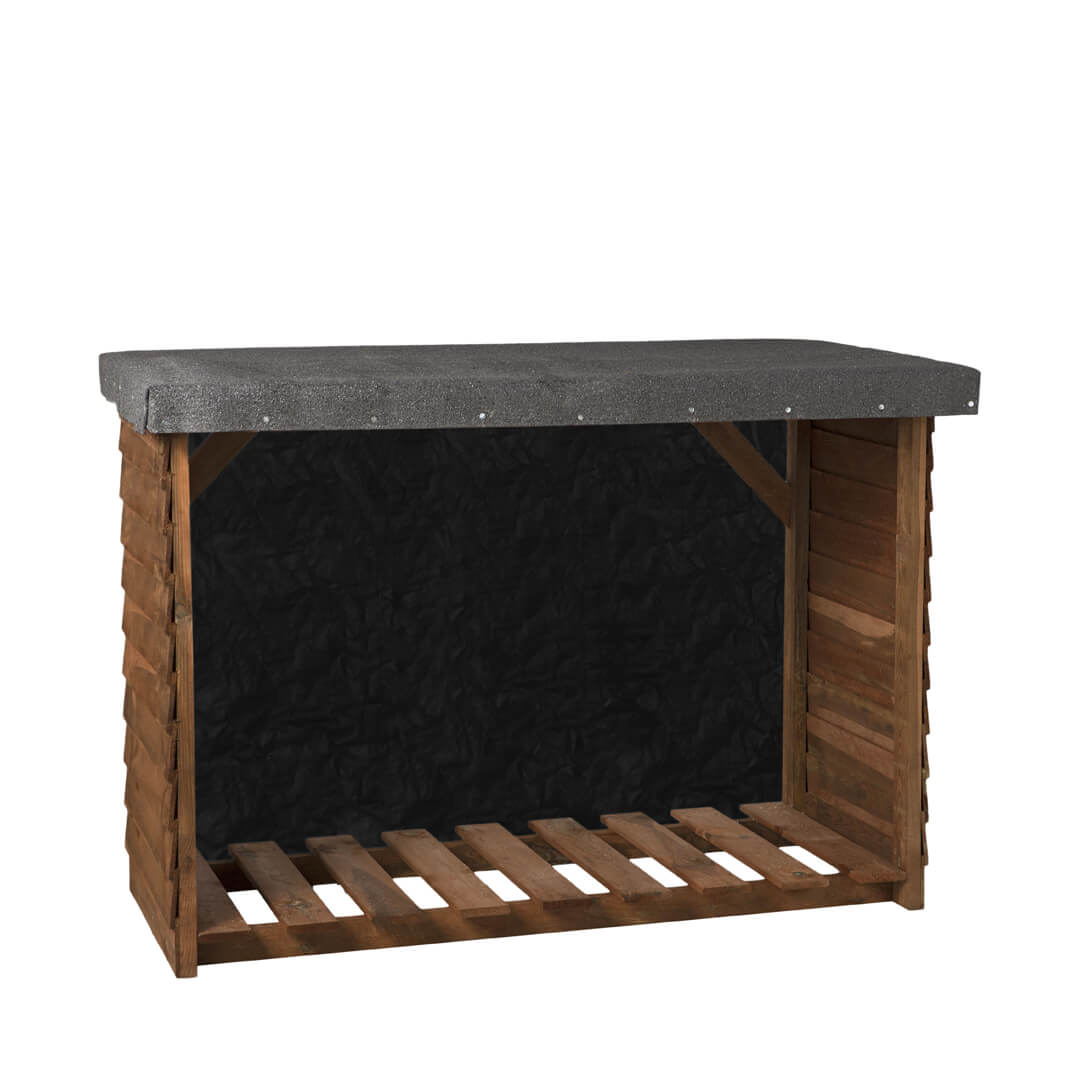 Con unas medidas de 140x100x60 cm (ancho x alto x profundo), con malla geotextil reforzada para instalar en la parte delantera o trasera y una cubiera superior, este leñero exterior de madera es el producto ideal para guardar la leña tanto en invierno como para el resto del año.