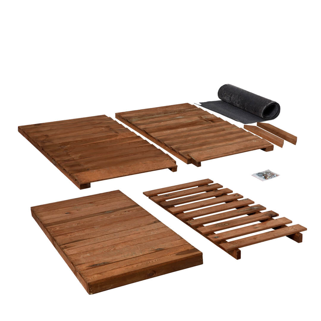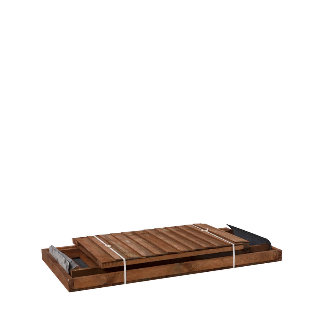 • Contenido del paquete: Tablas de madera, malla geotextil, cubierta superior, tornillería.