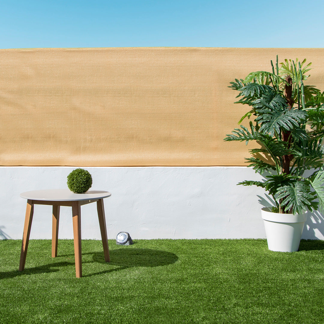 El color arena aporta un acabado natural y rústico, integrándose perfectamente en jardines, terrazas y patios. Sus extremos reforzados permiten una instalación sencilla en vallas, cercados y postes, garantizando su durabilidad frente a la exposición solar y el viento.