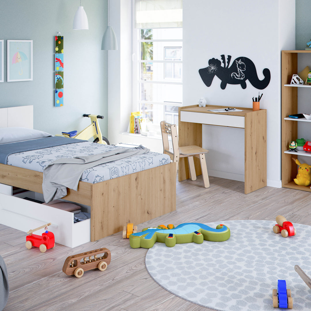 Consigue la combinación perfecta de estilo y funcionalidad con el modelo Noa, nuestro nuevo escritorio con cajón con combinación de color blanco y roble. Este mueble aporta un toque de elegancia y organización a tu dormitorio juvenil o a tu despacho en casa. Con su diseño minimalista y líneas limpias, este escritorio se integra fácilmente en cualquier decoración. El contraste armonioso entre el roble y el blanco agrega un aire fresco y moderno a tu espacio. El cajón que incorpora proporciona un espacio de almacenamiento discreto para mantener tus documentos y objetos personales organizados y al alcance de la mano. Ya sea para estudiar, trabajar o simplemente ser creativo, nuestro escritorio es la elección perfecta. Optimiza tu entorno de trabajo o estudio con este elegante escritorio. Combina estilo y practicidad para lograr un espacio funcional y atractivo.
