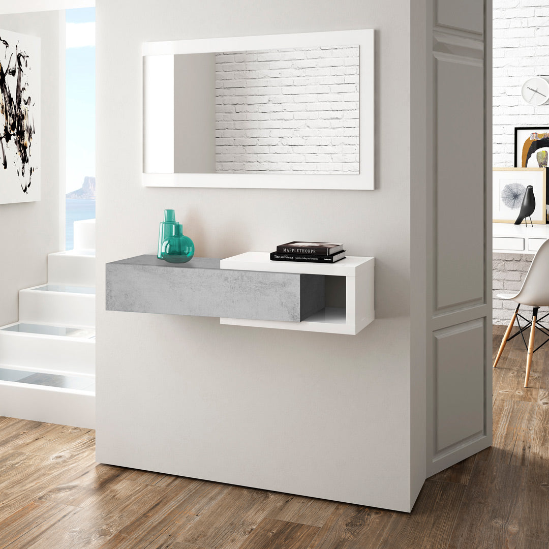 Mueble recibidor con espejo noon 19x95x26 cm blanco artik / cemento