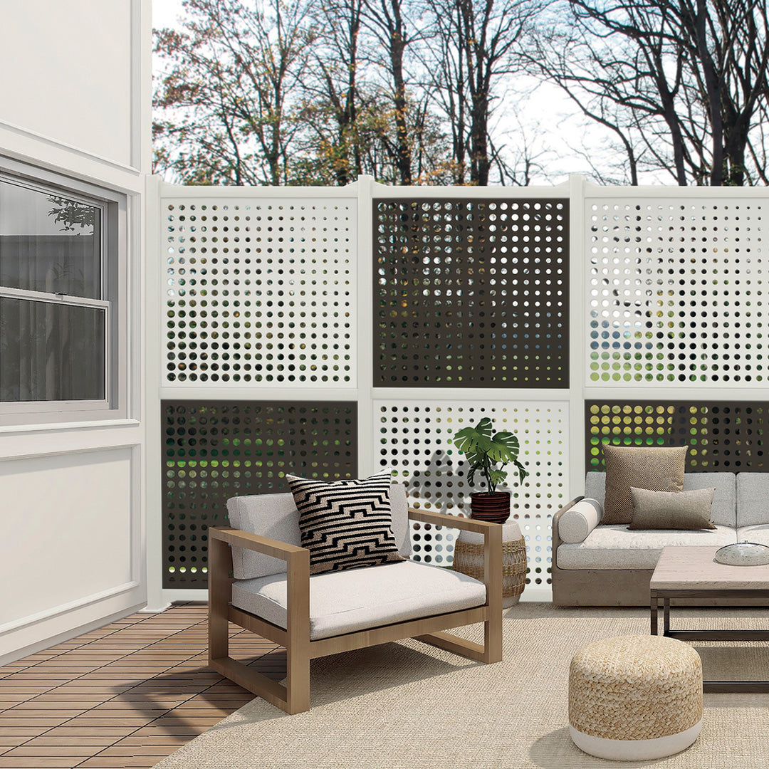 ¿Buscas añadir un toque de estilo y privacidad a tu jardín? Descubre la celosía blanca cuadrada modelo Moon , un elemento que puede ser usado como ocultación que combina diseño innovador con funcionalidad excepcional. El diseño de este modelo se distingue por su gradiente de elementos geométricos y formas irregulares, creando efectos de luz únicos, agregando un toque de magia a tu entorno.
