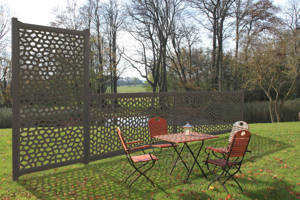 Descubre nuestra gama de paneles decorativos, donde podrás elegir el modelo Mosaïc, un panel en color óxido, ideal para quienes buscan dar un nuevo aire a espacios como el jardín, la terraza o incluso el interior de su hogar. Gracias a su diseño geométrico, este panel decorativo aporta una estética atractiva, a la vez que actúa de forma funcional como un elemento de ocultación y como un elegante divisor de ambiente.