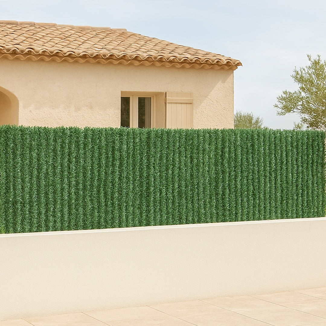 El seto artificial URBANHEDGE es la solución ideal para quienes buscan ocultar y decorar espacios exteriores como jardines, terrazas o vallados. Su diseño de 30 varillas por metro imita un follaje verde denso, proporcionando un efecto visual natural sin mantenimiento.