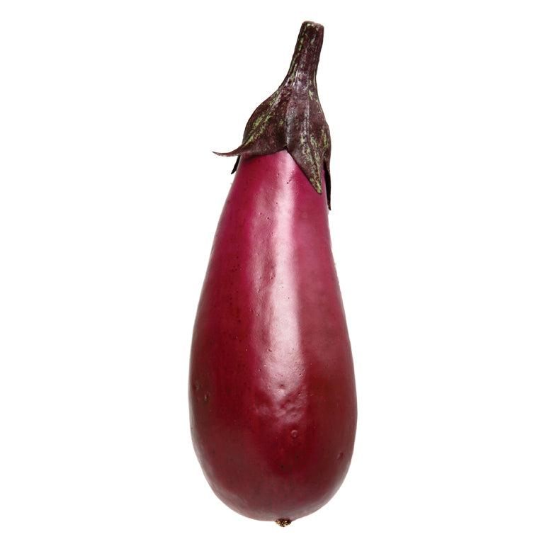 O seu aspeto natural e acabamento de alta qualidade tornam-na indistinguível de uma beringela verdadeira, permitindo criar composições decorativas que captam a essência de uma feira de produtores.