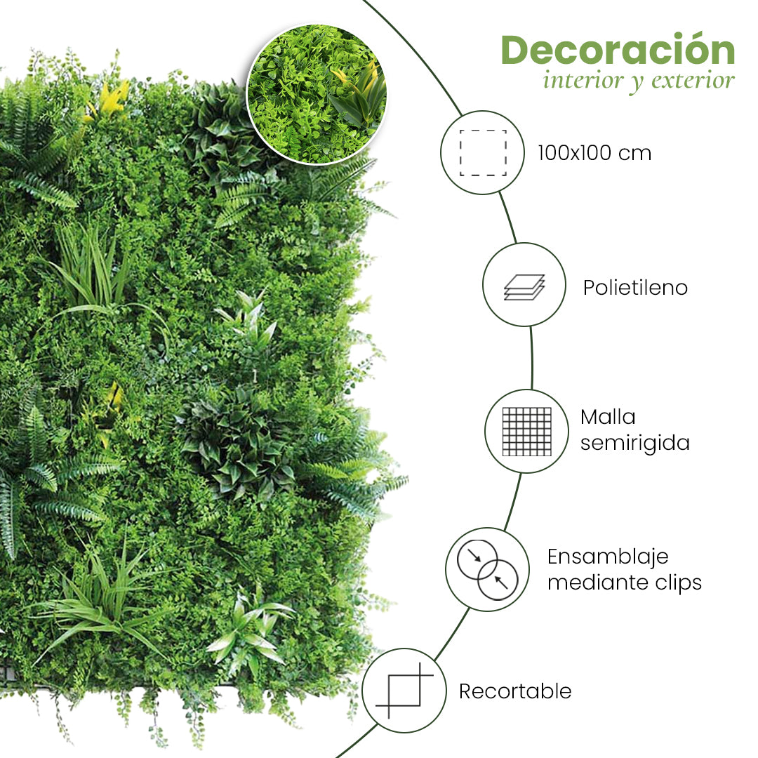 Rollo Jardín Vertical Leafy 100 x 100 cm Nortene, decoración natural en tonos verdes, resistente a UV para interior y exterior.
