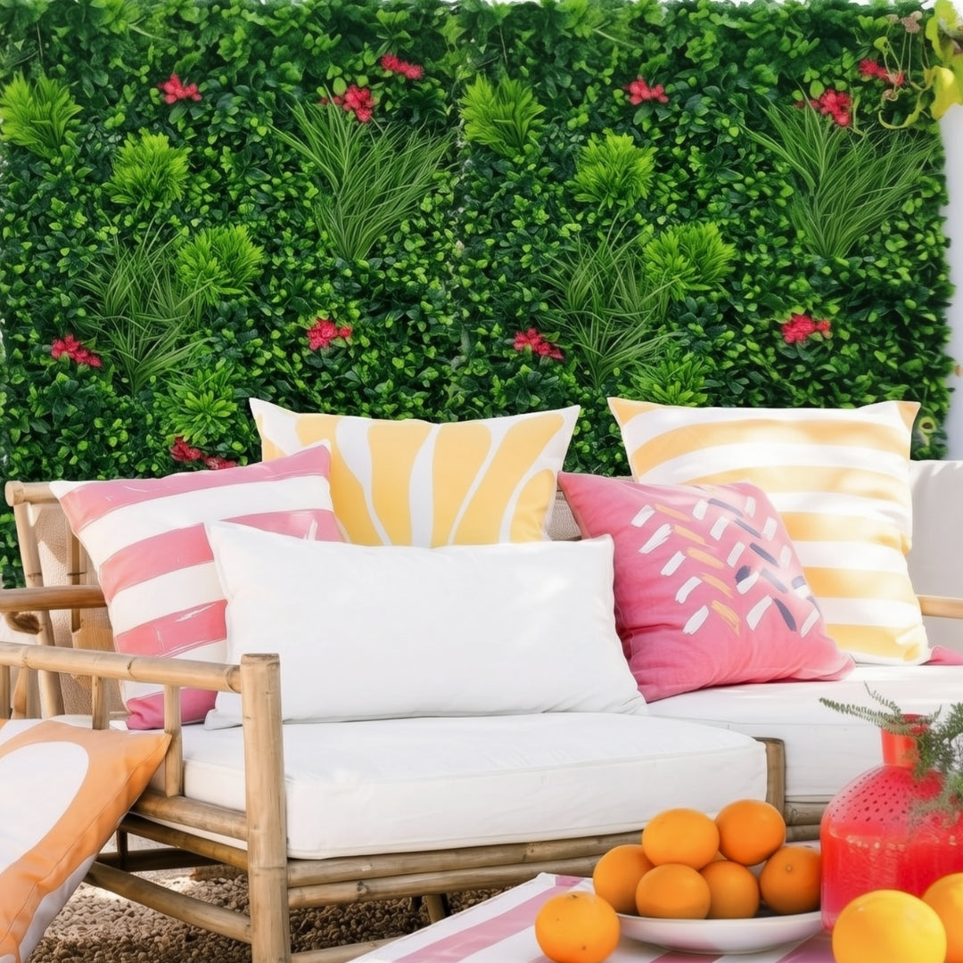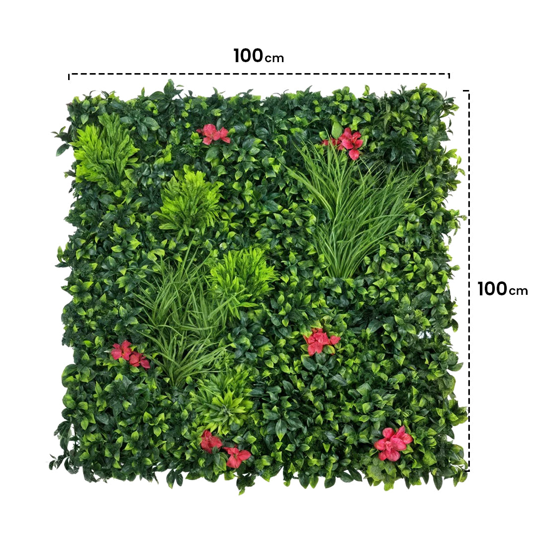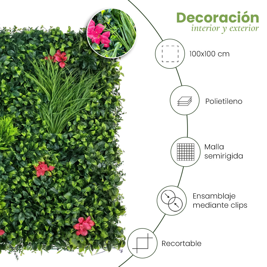 Descubra o modelo Villa, um deslumbrante jardim vertical com folhagem densa para revestimento de paredes, que combina folhas verdes com flores coloridas de buganvílias , acrescentando um toque de alegria e cor tanto a residências como a espaços comerciais.